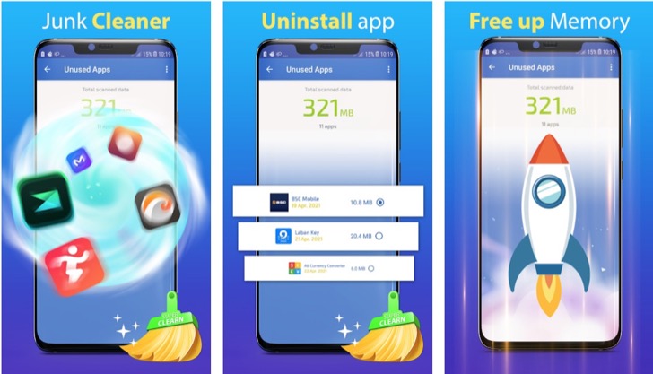 The Memory Cleaner Free app is an easy-to-use and powerful cleaner that boosts the performance of your phone by deleting unnecessary or duplicate files or applications. It searches and removes junk files, cache files, duplicate files, old screenshots, old downloads, large files, and unused apps. In sum, it frees up your phones memory and increases its speed.