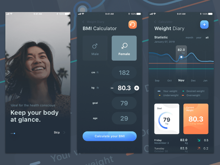 The BMI Calculator app provides you with a comprehensive and straightforward reading of your body stats. It is easy to use, and the interface is visually appealing. Best of all, its entirely free to use, and you dont have to register or give any personal information.
