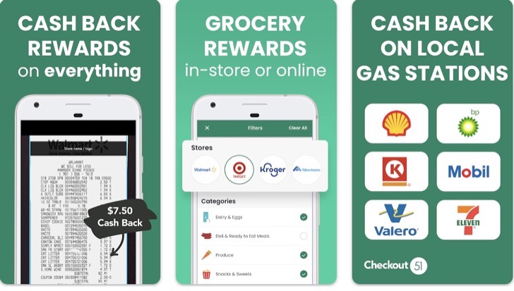 Checkout 51 is one of the best cashback apps youll find. The app offers weekly discounts on all kinds of groceries and necessities. Additionally, they have a fuel rewards program that allows you to earn up to 25 cents per gallon of gas at participating gas stations.