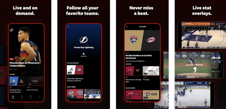 Bally Sports offers a wide array of content, including live games, original programming, pre- and post-game shows, highlights, game replays, and stats for NBA, NHL, MLB, college football and basketball, WNBA, and more.