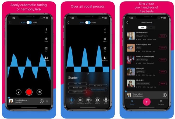 Using Voloco is simple and straightforward. Choose a track from your music library or the apps beat library, and Voloco will detect the key and tune your vocals accordingly. You can also choose from the apps dozens of vocal effect preset packs to add unique effects like harmonies, stereo width, and vocoding. Once youre happy with your sound, you can save or share your audio or video performance with others.