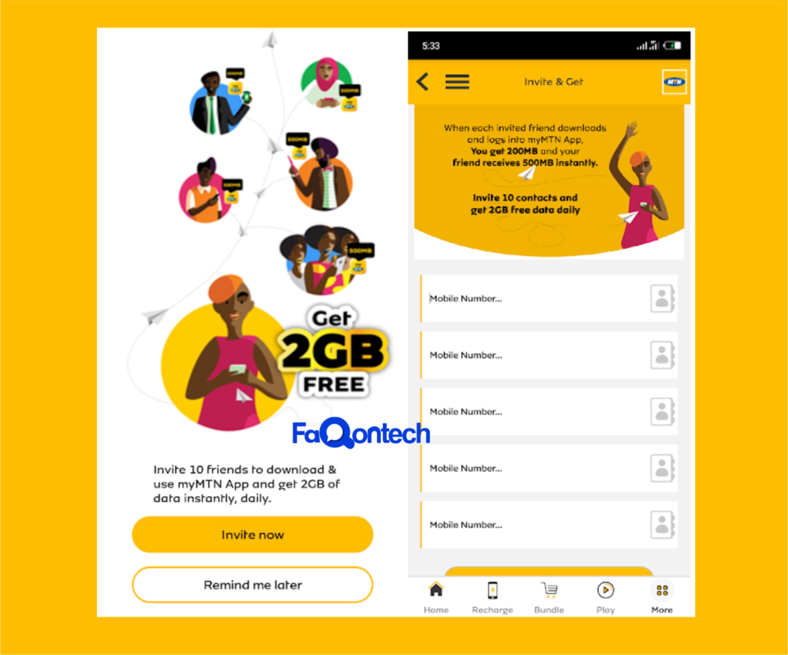 MyMTN is a user-friendly application that allows subscribers to manage their mobile services efficiently. With MyMTN, you can top-up your airtime balance, purchase data bundles, manage your account balance, and pay your bills, all from the palm of your hand.