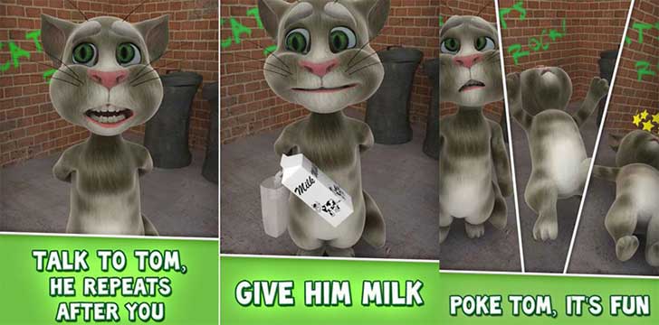 Talking Tom is a virtual pet app that lets you interact with Tom, your new furry friend. Some of the app's features include feeding Tom his favorite foods, making him talk, and even making him fart! Watch his hilarious reactions as you poke his head or pet him to make him purr happily.