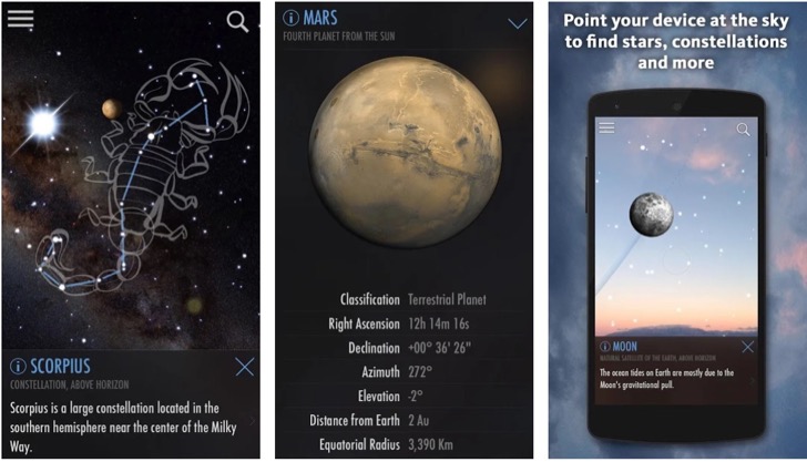 SkyView® Lite is a free app available on both iOS and Android platforms. With this app, you can point your device's camera at the sky to identify and locate celestial objects, including stars, constellations, planets, and satellites. SkyView® Lite uses augmented reality (AR) technology to superimpose a map of constellations and objects onto your live camera feed.