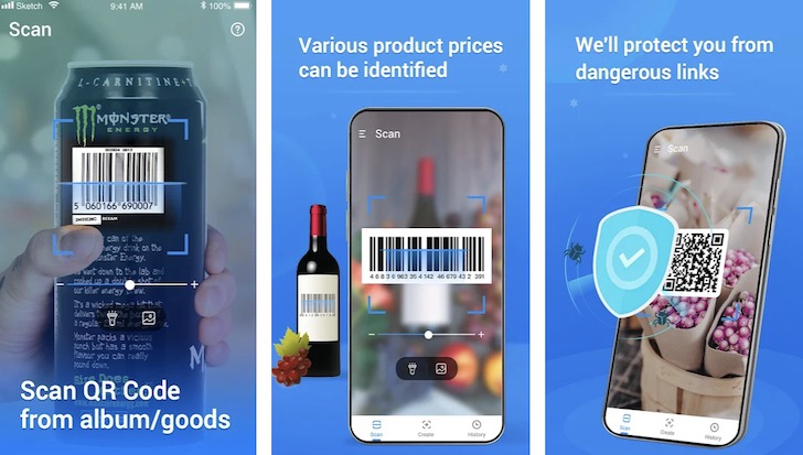 QR Code & Barcode Scanner Read is a lightweight and fast app that scans any QR code or barcode, including contacts, products, URL, Wi-Fi, text, books, email, location, calendar, etc. This app is available on Android devices for free. It has the following features: